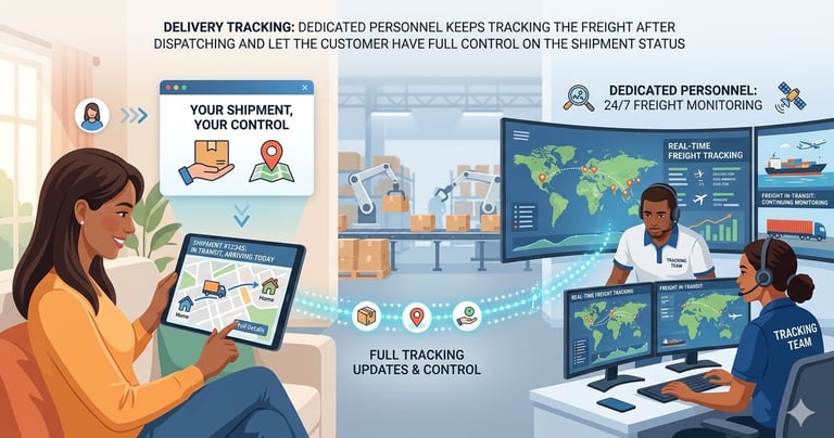 Dedicated personnel keeps tracking the freight after dispatching and let the customer have full control on the shipment status